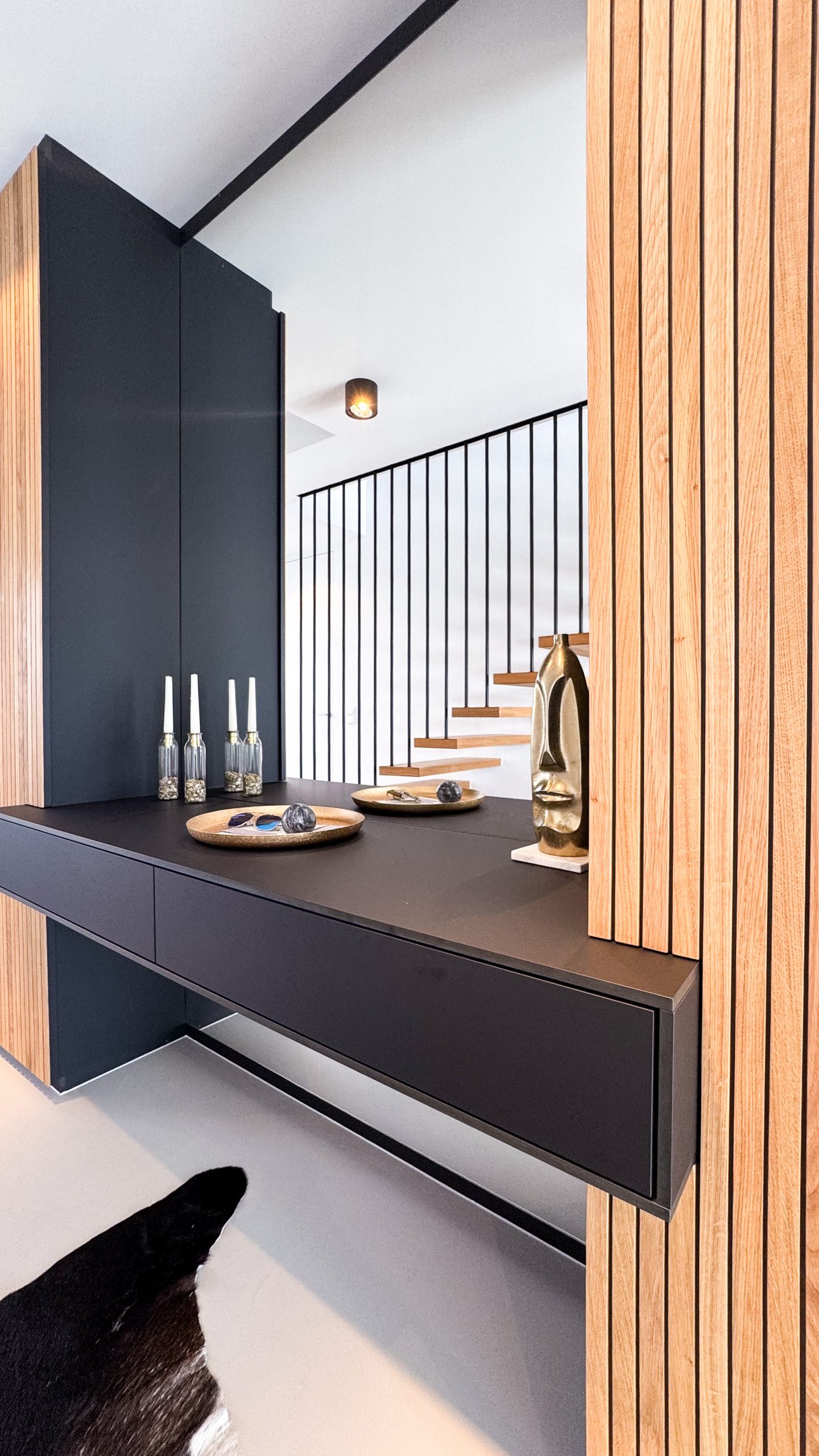 Das änderte sich schlagartig bei der Firma Gerber – über eine private Empfehlung lernten wir den Geschäftsführer, Sven Gerber, kennen. Es gab sofort Ideen für unsere „Problemchen“ und wir merkten wie es vor allem um Details ging, die uns jetzt in unserem fertigen Haus jeden Tag begeistern. Dinge wie eine individuell geschreinerte Küche oder einen Einbauschrank unter der Treppe hören sich ganz normal an – aber wenn man die Bilder gesehen hat, braucht man keine Worte mehr dafür – einfach nur einzigartig!